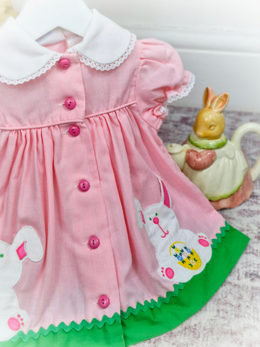 12 months. Pink vintage Youngland dress with Easter bunnies
