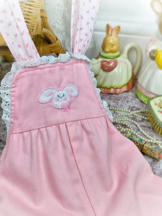 2-3 years. Pink Easter vintage short dungarees. Adjustable straps.