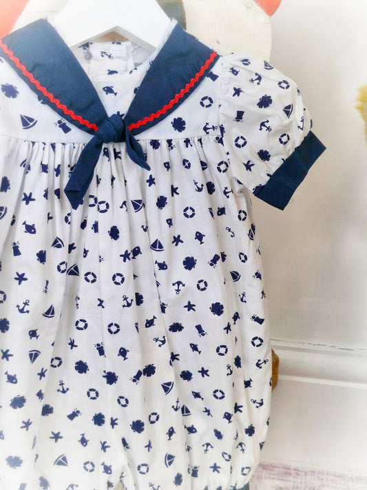 18-24 months. Vintage boat romper. Navy, white and red