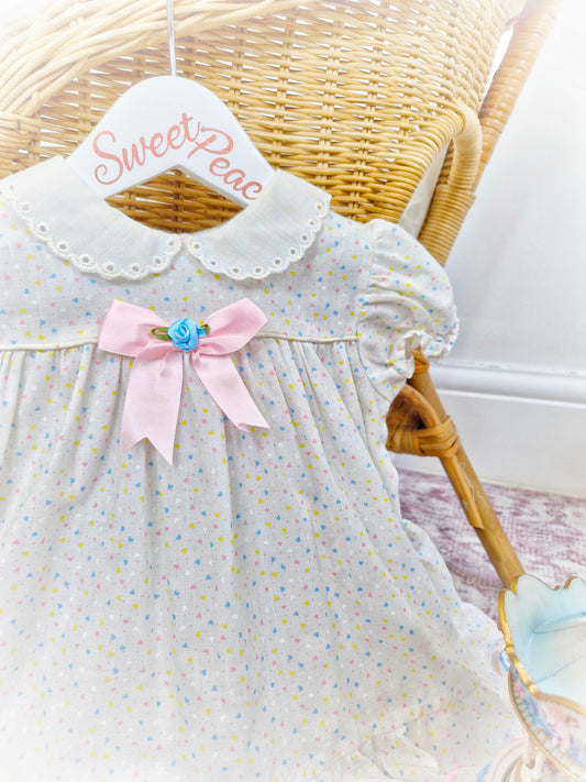 12-18 months. White collared dress with pastel hearts and ribbons from Lil' Airess