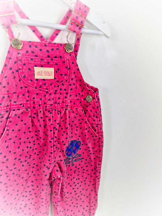 18 months. Pink Okie Dokie dungarees with polka dots and floral print