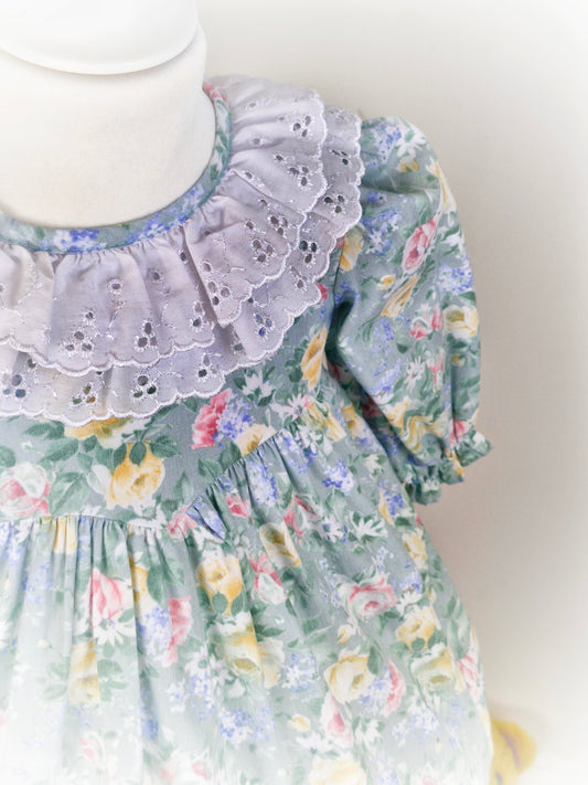 2 years. Floral vintage dress by Little Love with broderie anglais frills