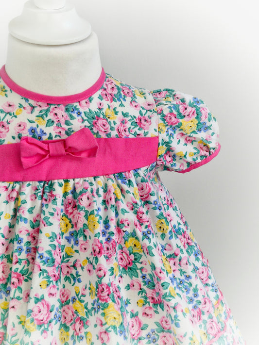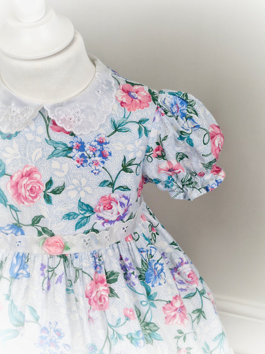 2-3 years. Vintage floral dress by Forever Florals with embroidered collar and hem