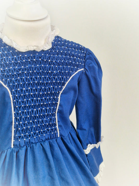 3 years. Navy and white high-neck smock dress