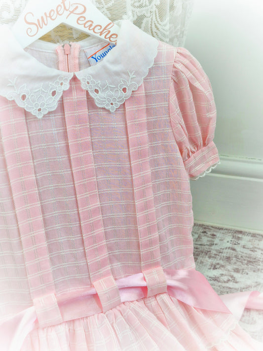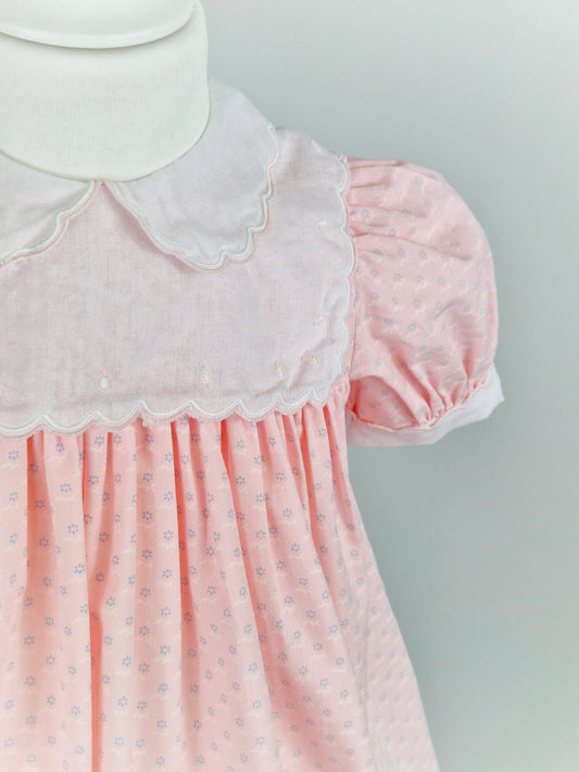 4 years. Sophie Dess vintage dress, pink with white bib and collar