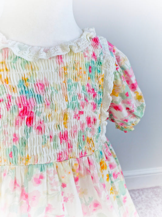 3-4 years. Bright floral Roanna dress with big bow and flower