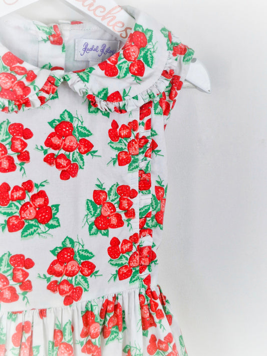 5 years. Vintage inspired Rachel Riley sleeveless strawberry print dress with collar