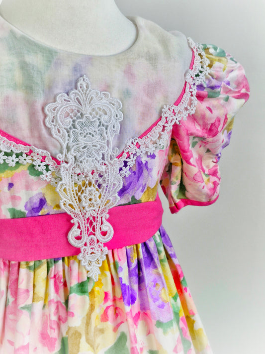 6-7 years. Vintage floral dress by Jolene with white bib