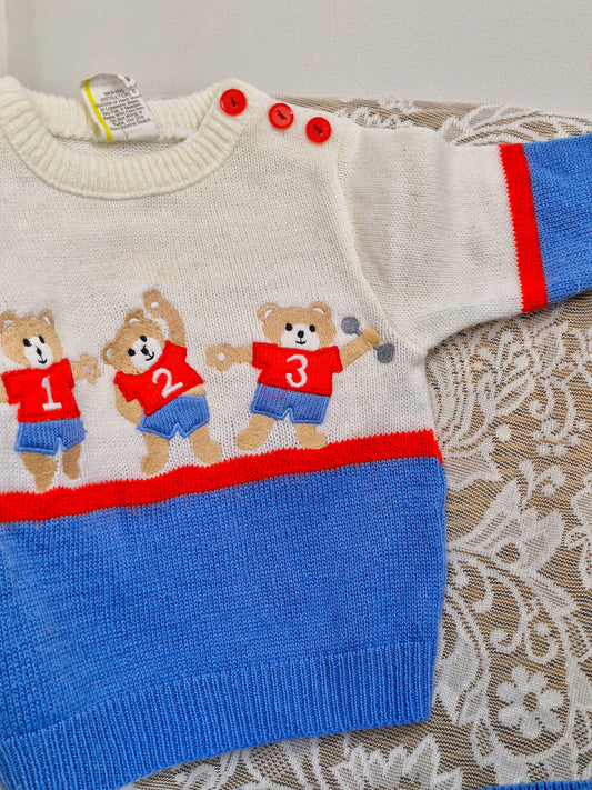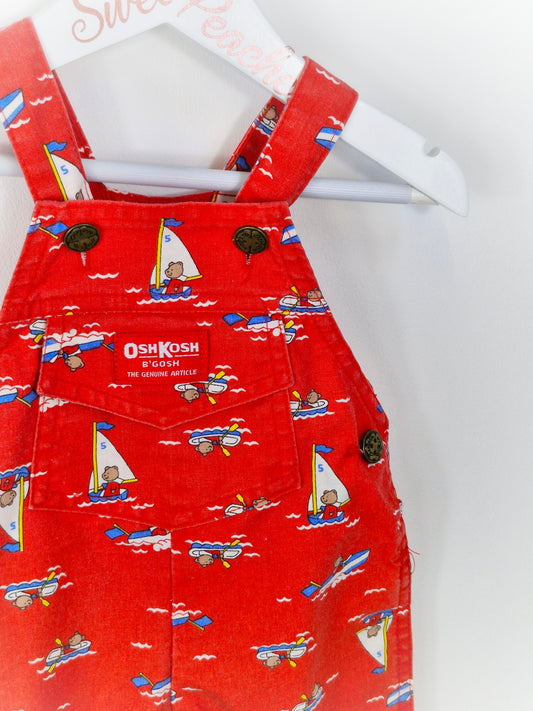 Best fit 6-12 months. Red Oshkosh dungarees with bears