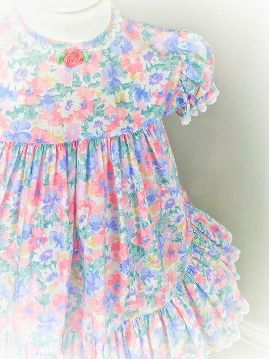 2-3 years. Pastel floral Bryan, vintage dress with dainty white lace trim