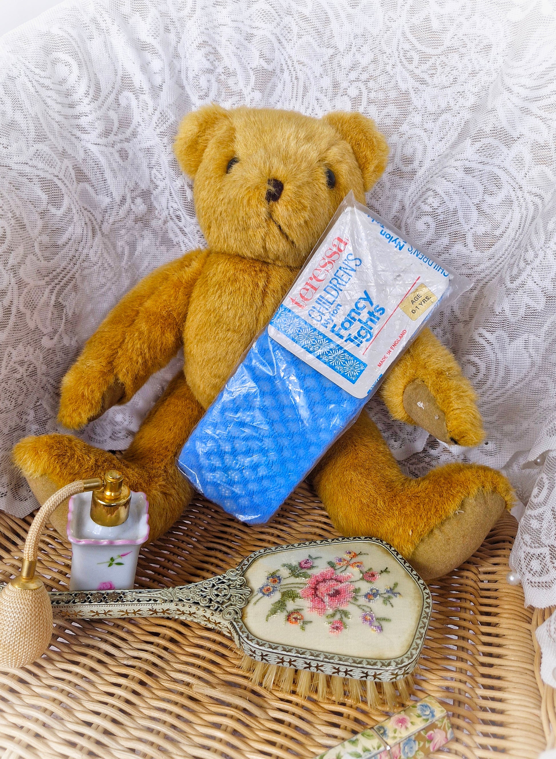 0-1 years. Vintage Teressa children's cumfi tights in blue diamonds