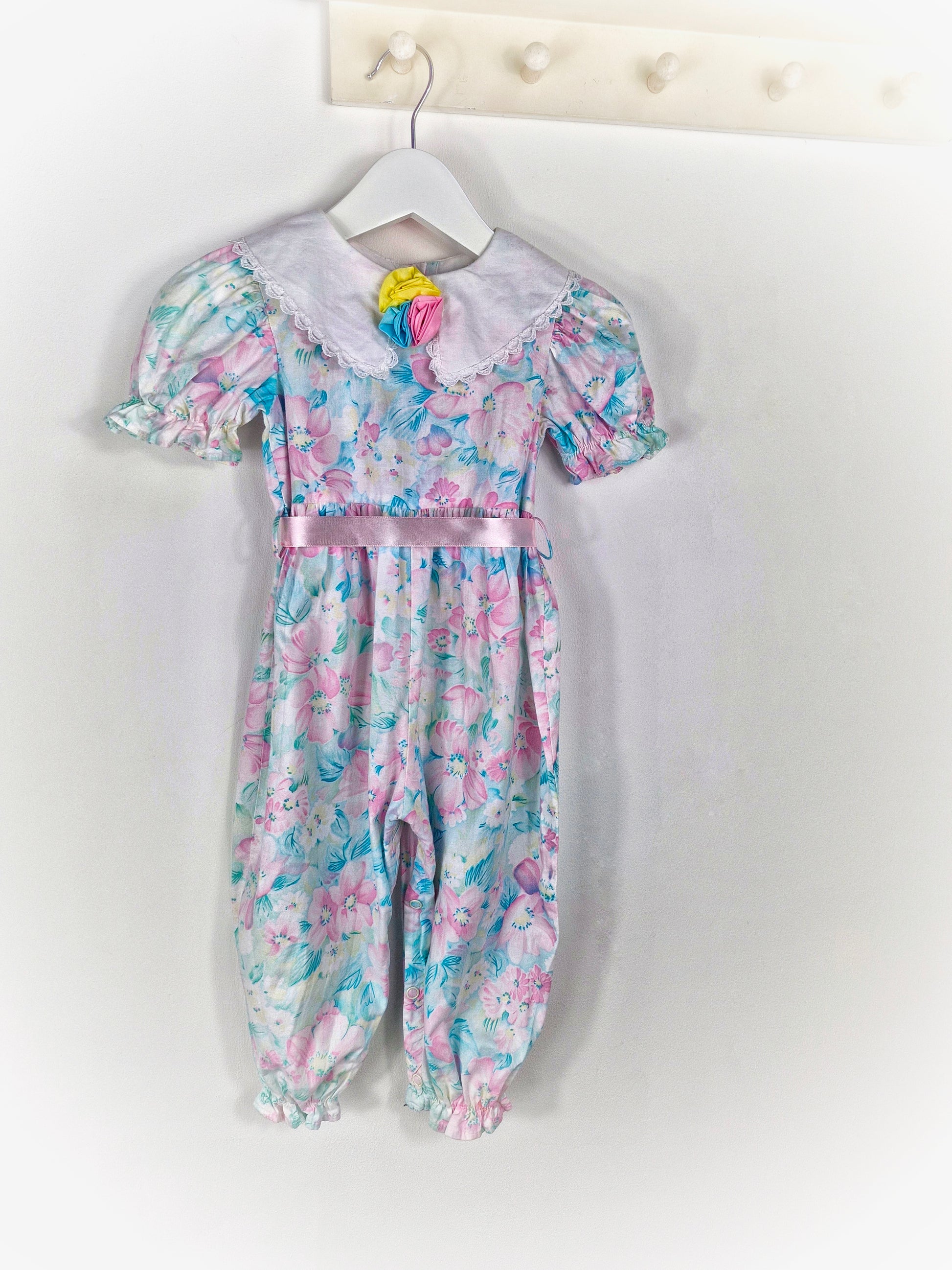 18 months. Vintage floral romper from Brights Creek with white collar and flowers