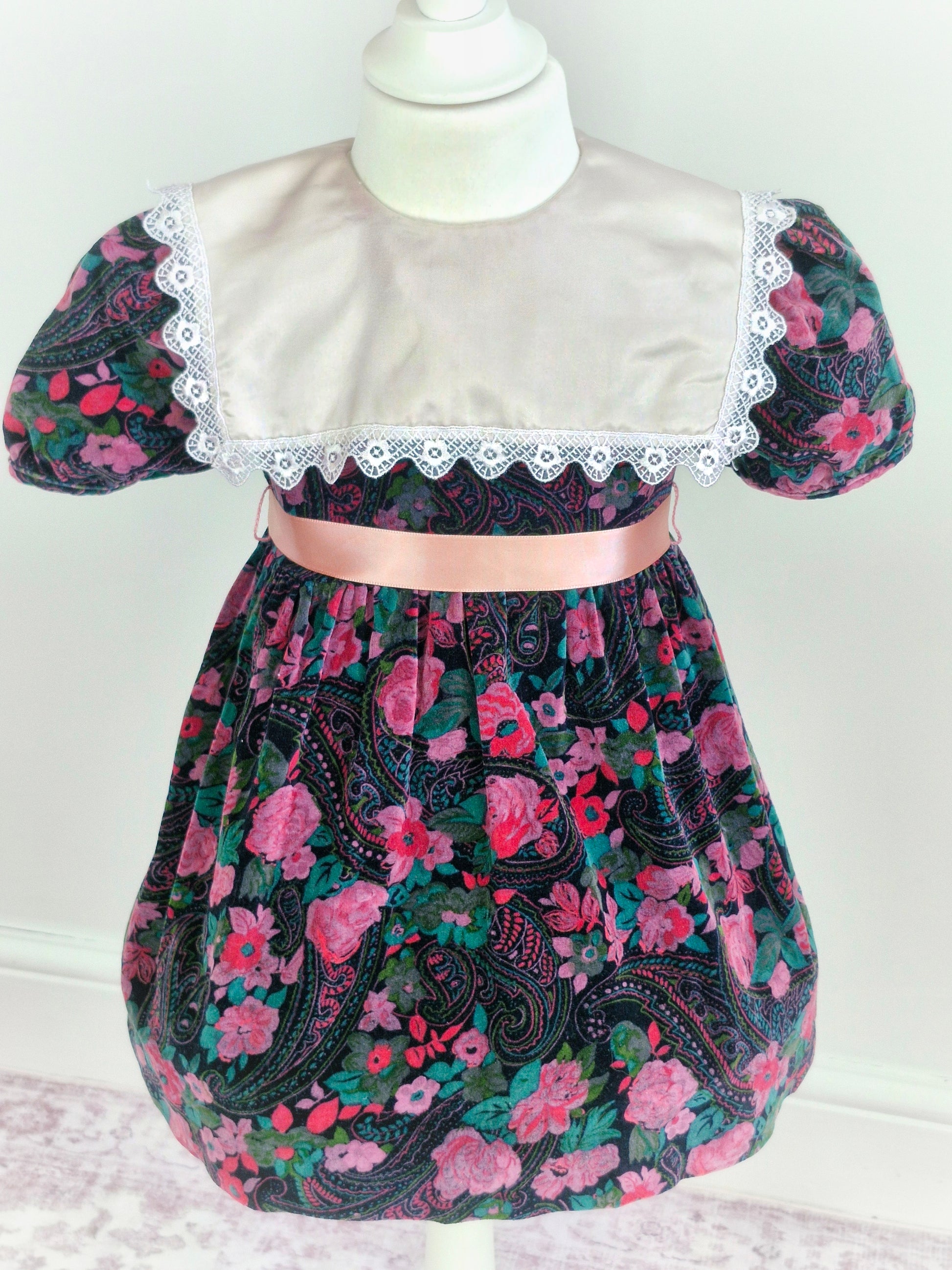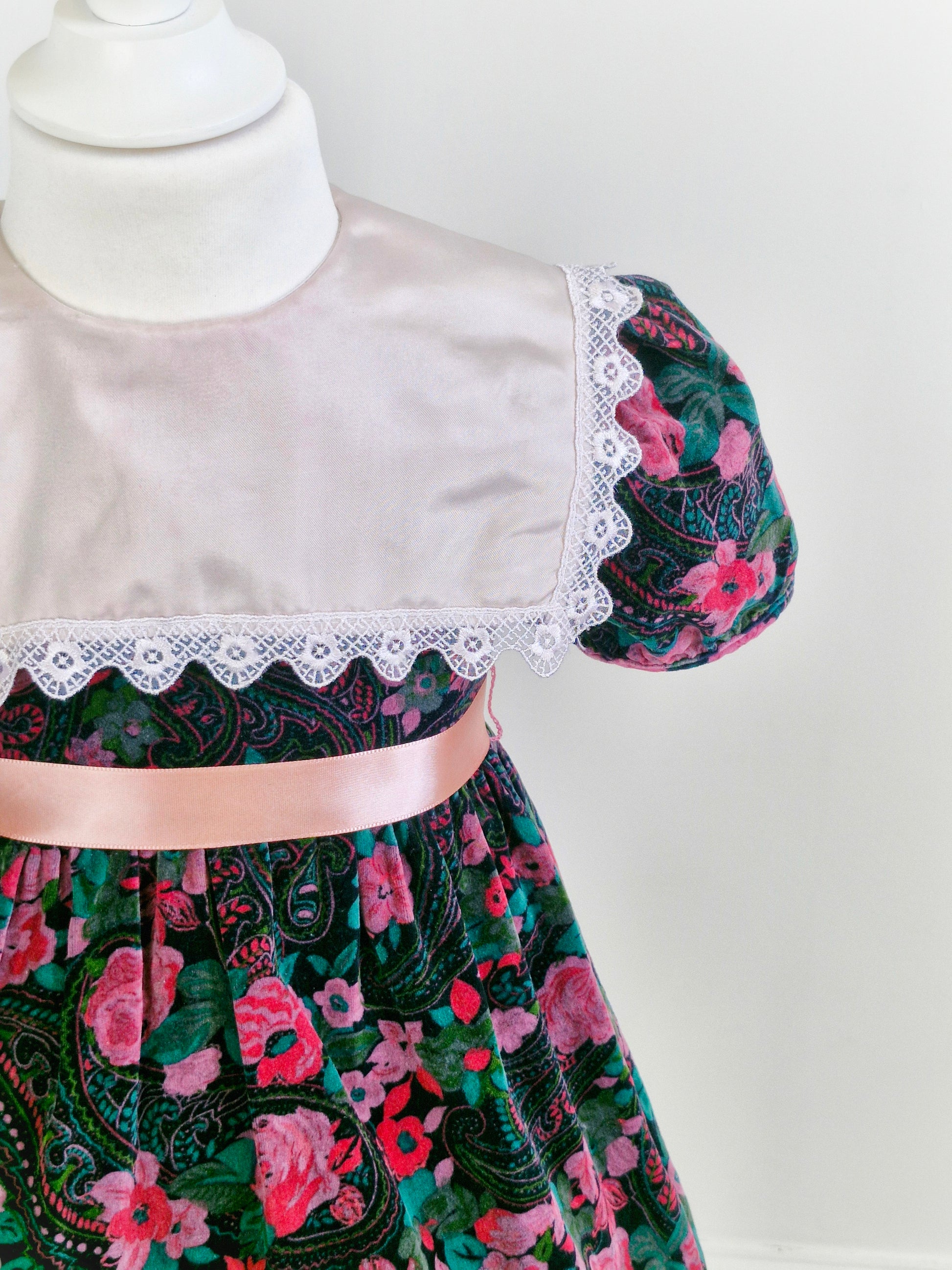 3 years. Black velour floral vintage dress from JoJoe with satin bib