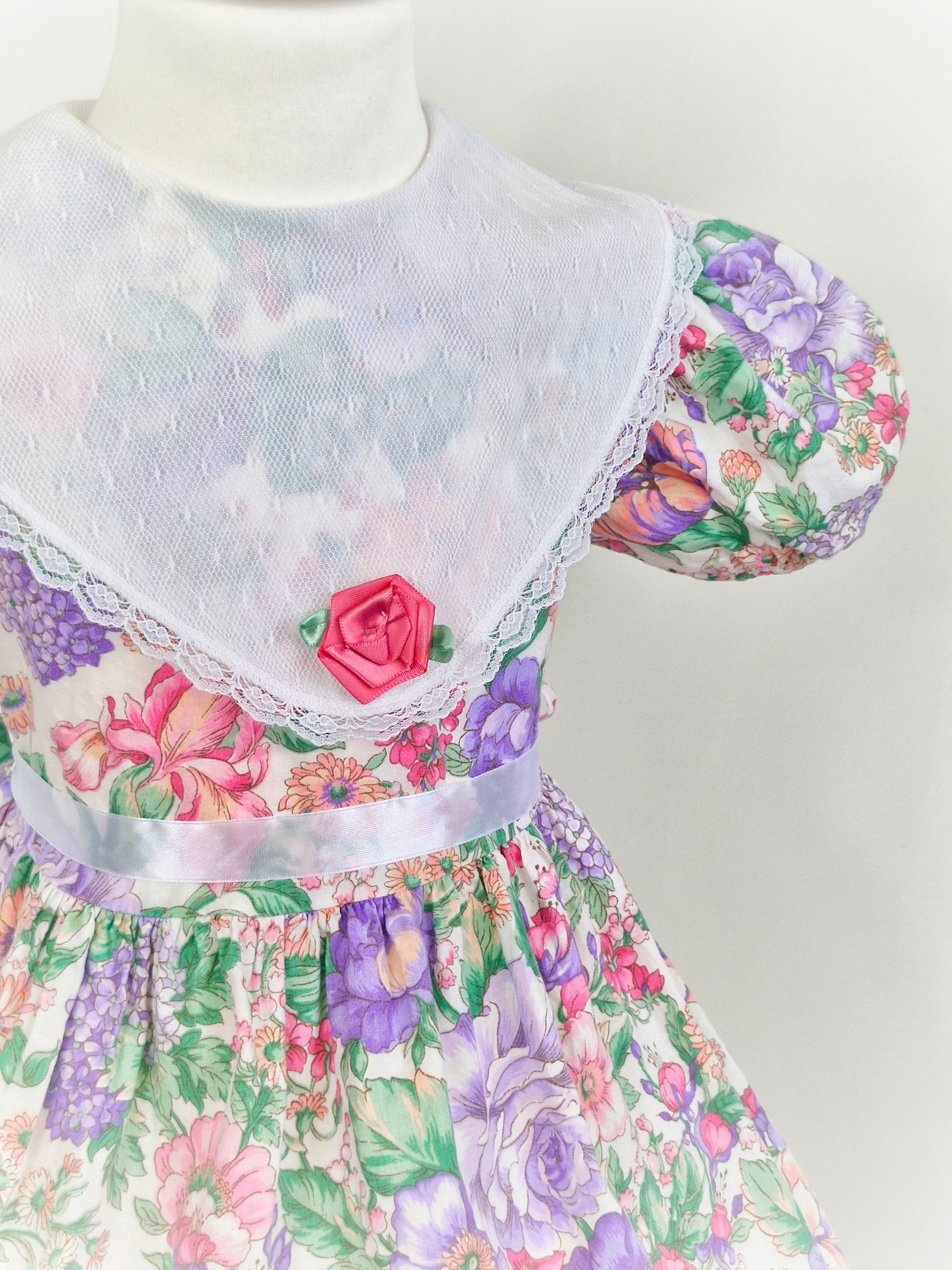 4 years. Floral dream! Vintage dress with white lace bib and rose by Picture Perfect