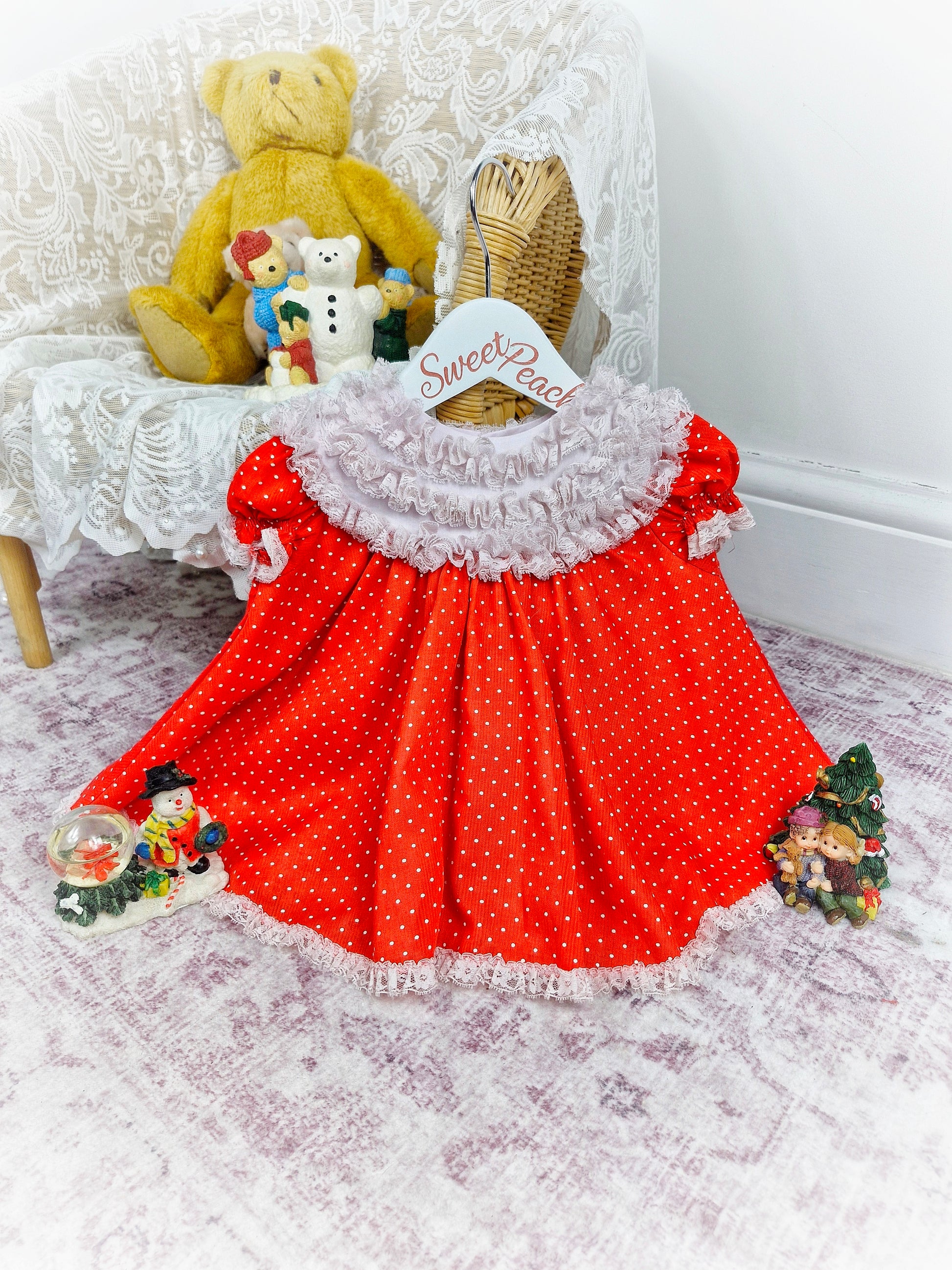 Red and white polka dot vintage dress white white ruffley bib