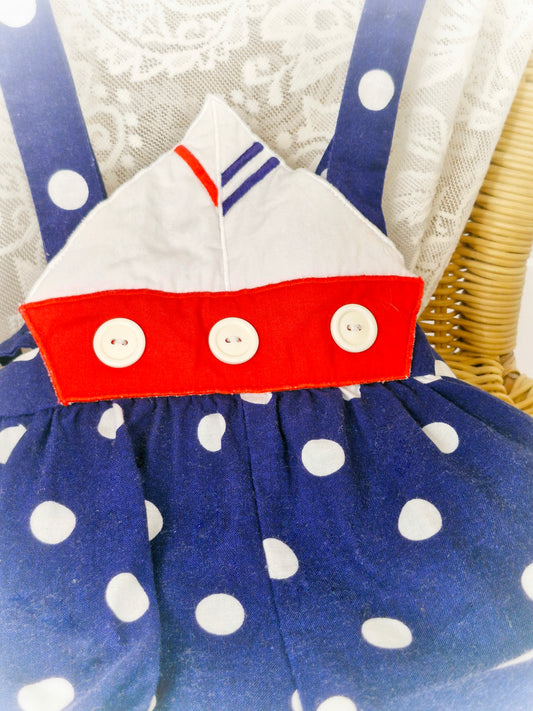12-18 months. Navy vintage sailor dress with white bib and red ribbon
